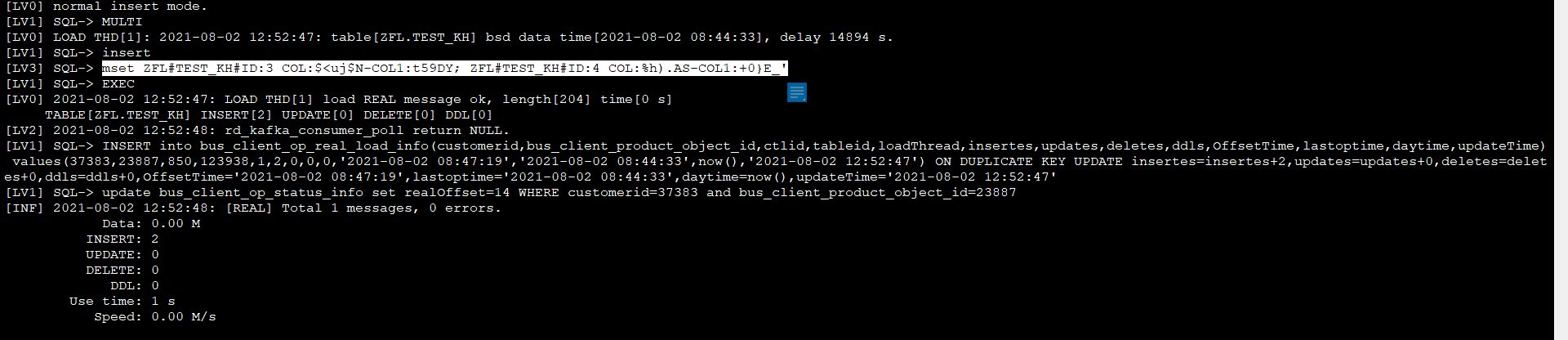 [LV0] 2021-08-01 12:48:35: LOAD THD[1] loading FULL message 0, table[ZFL.TEST_KH] topic[37370.zfl.test_kh.s.2] offset[2]...