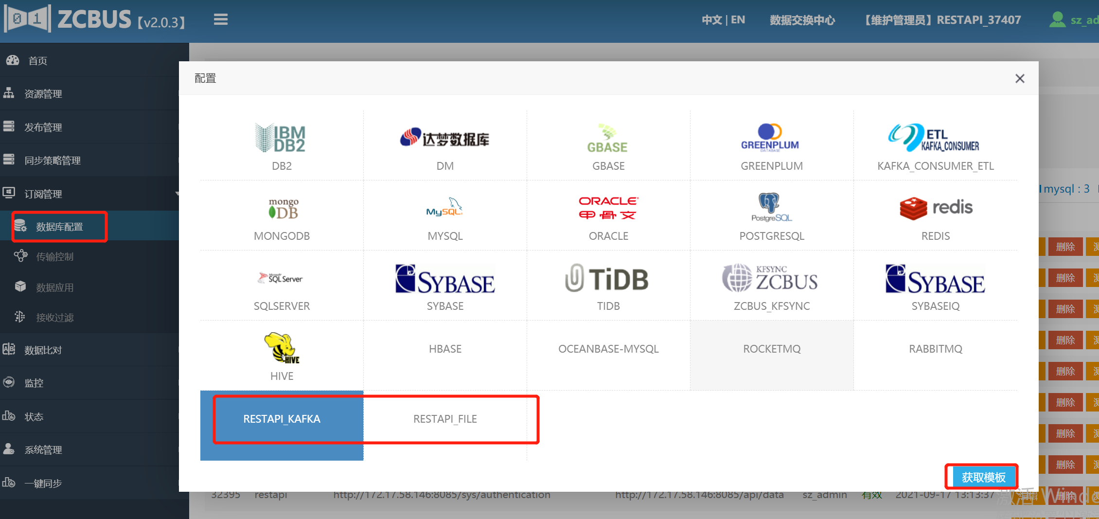 目录 搜索 ZCBUS 2.0关于ZCBUS 2.0ZCBUS 2.0简介ZCBUS 2.0 与 1.0区别ZCBUS 2.0新特性高可用&负载均衡支持列表使用限制法律声明快速入门自动化安装Kafka集群安装需求容器化安装(安装方便)非容器化部署MYSQL/KAFKA安装参考本地部署集群安装arm集群安装服务安装交换服务MYSQL/KAFKA外挂服务模式名词解释启用firewalld并部署ZCBUSWEB浏览器支持client模式安装云上云下数据交换模型docker环境修改为非root用户维护使用安装指南数据交换模型数据集中模型跨IDC数据交换模型远程数据分发模型日志监控服务OS 兼容CENTOS兼容麒麟操作系统兼容ZCBUS高级模式安装实时监控日志监控管理指南简要说明容器发布实时ORACLEXSTREAMS配置LOGMNR配置支持说明OGG配置MYSQL配置SQLSERVER配置手动关闭SQLSERVER CDC手动注册SYBASE配置FILE_BATCH配置FILE配置MONGODB配置DAMENG配置TDSQL配置OceanBase(for mysql)配置OcealBase(for oracle)配置OPEGAUSSDBPOSTGRESQLPanWeiDBTELEPGPOSTGRESQL配置PG分区表-内置分区表KingbaseES V8 (R3)配置KINGBASEGAUSSDB定时发布定时任务添加DB2INFORMIX达梦HANAYASHANCLICKHOUSE发布节点监控跨IDC发布离线文件发布注意事项策略管理数据处理函数说明使用(测试)说明数据转换订阅端配置数据转换逻辑(update)数据转换配置[新版]订阅KAFKA数据库配置通道配置数据应用HIVEHBASEUDALMONGODBOeanbase-mysqlROCKETMQRABBITMQREDISRESTAPIRESTAPI_FILERESTAPI_KAFKAupdate转delete+insert操作逻辑DB2HANAKAFKAKAFKA_V1.0KAFKA_V2.0非认证模式SASL认证v1.0 升级到 v2.0KERBEROS认证KAFKA_V3.0TOPIC使用管理表级别分区设置API客户端(service后台进程)YASHANDBFILEORACLEDATAHUB订阅节点监控比对ETL数据比对链路追踪路由网络配置(netmap路由)工具目录结构及文件说明导出导入数据比对kafka工具SSH互信自动创建工具目录结构及文件说明DDL翻译消息管理邮件告警配置系统参数任务计划网闸的发布和订阅优化调整手册二次开发手册SDK发布开发模式兼容组件服务模式兼容SDK数据处理SDK订阅常见问题附加日志命名规则123 暂无相关搜索结果! 本文档使用 MinDoc 发布 RESTAPI 特殊配置:(1)订阅管理—>数据库配置—>添加,添加选择RESTAPI类型(2)订阅管理—>数据库配置—>编辑问题1:zcbus_other存在回车时,不能全部保存,只保存第一行问题2:提交时,提示异常(3)数据应用—>数据表,修改相应的库名和表名:注:库名为topic名,表名为分区号文档更新时间: 2023-06-30 22:30 作者:阿力