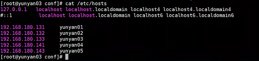 - 注:三个主机名不允许一样,否则安装时会提示异常,另主机名不建议改为类似于192.168.180.131 localhost这种方式