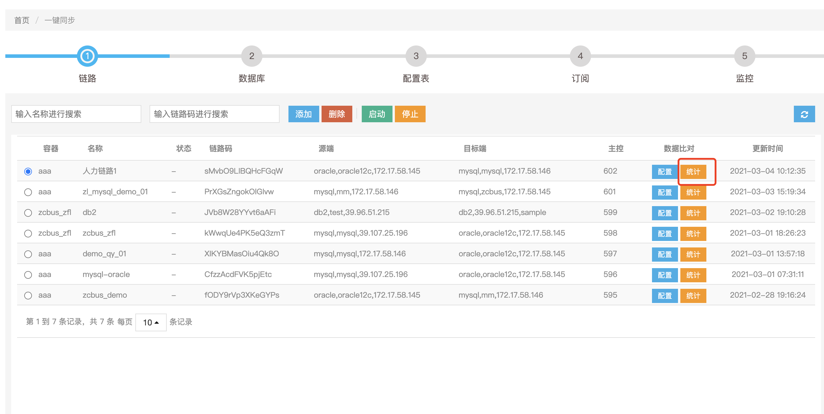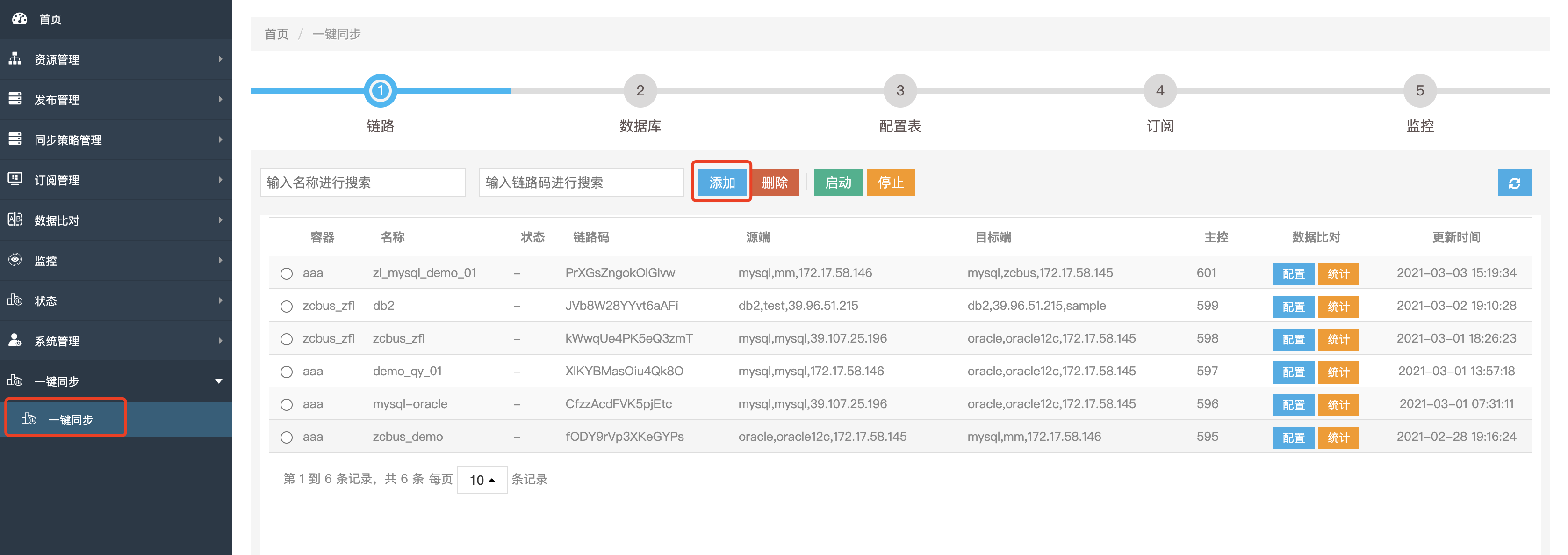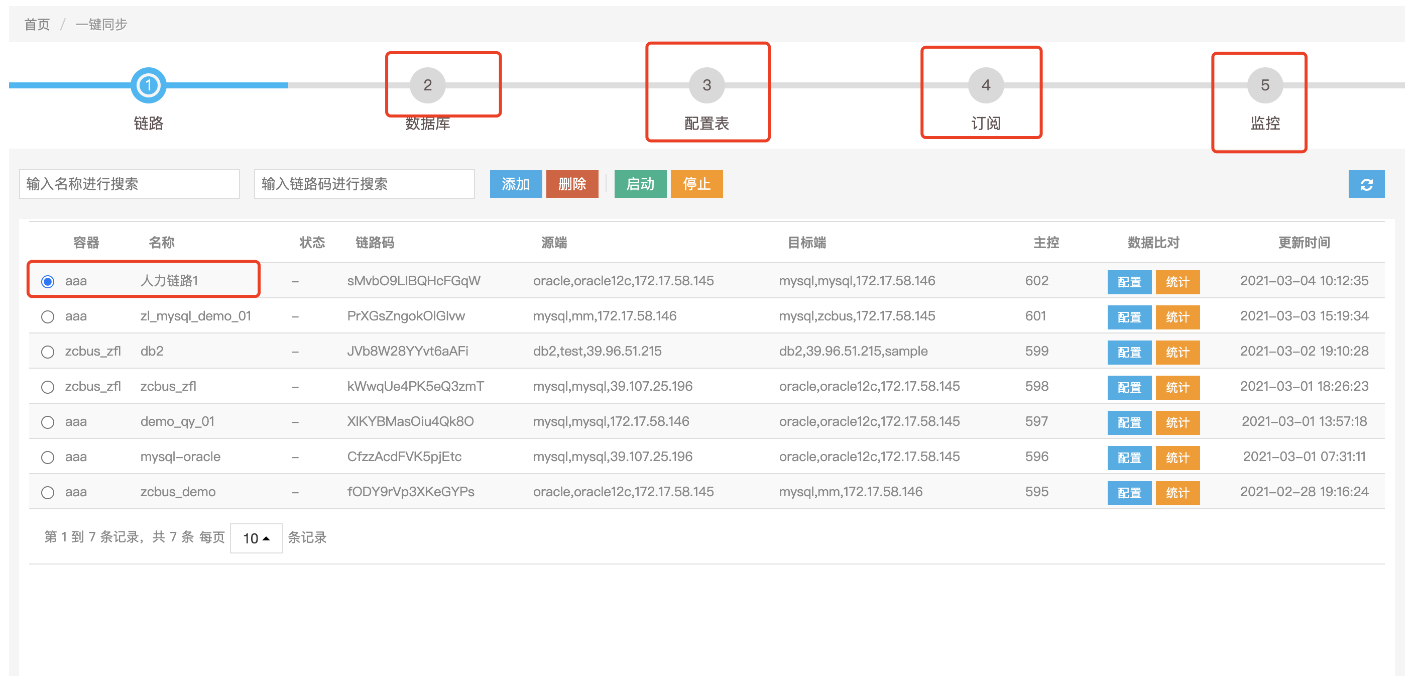 选中要同步的表,先开启全量定阅,修改进程数需先确保订阅状态为停止。
