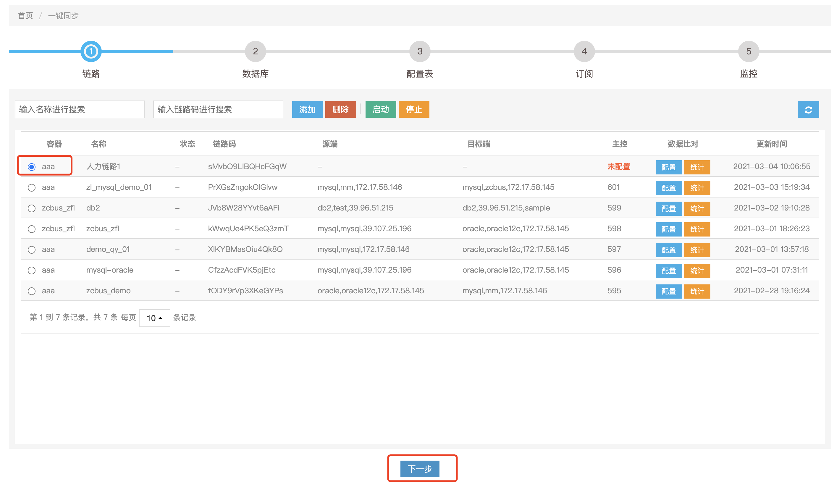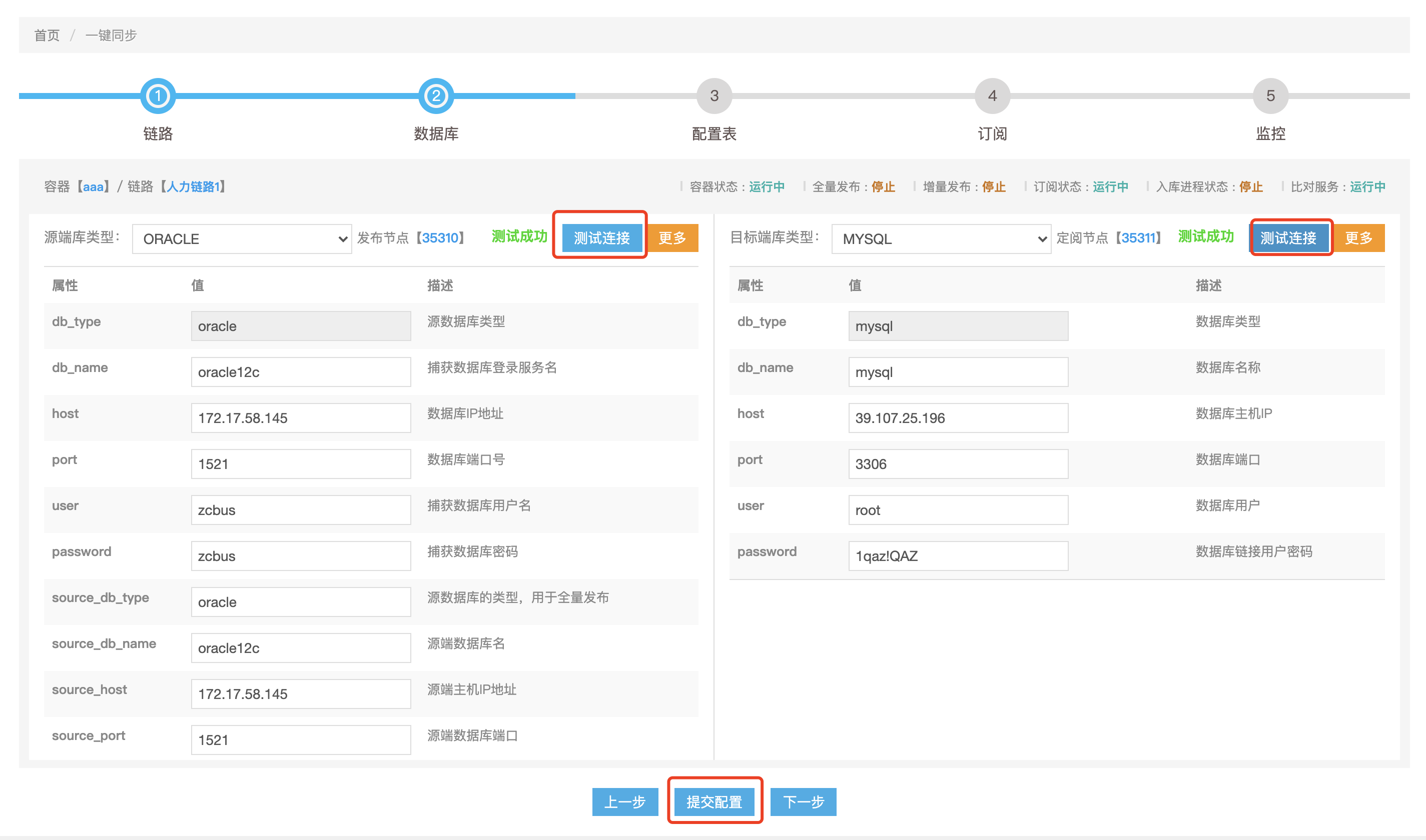 点击连接测试,测试通过后,点击提交配置,点下一步