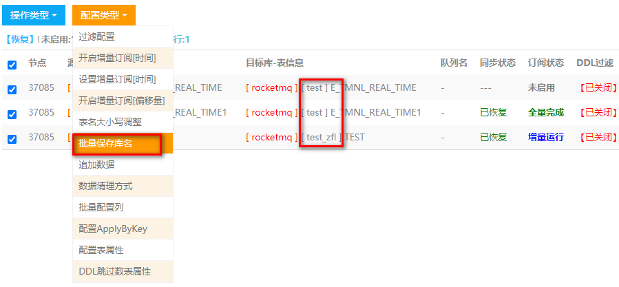 (2)指定topic:批量保存库名,rocketmq如果设置了自动创建topic,指定的topic无需手动创建,负责需要手动创建指定的topic;