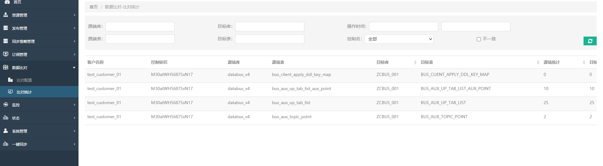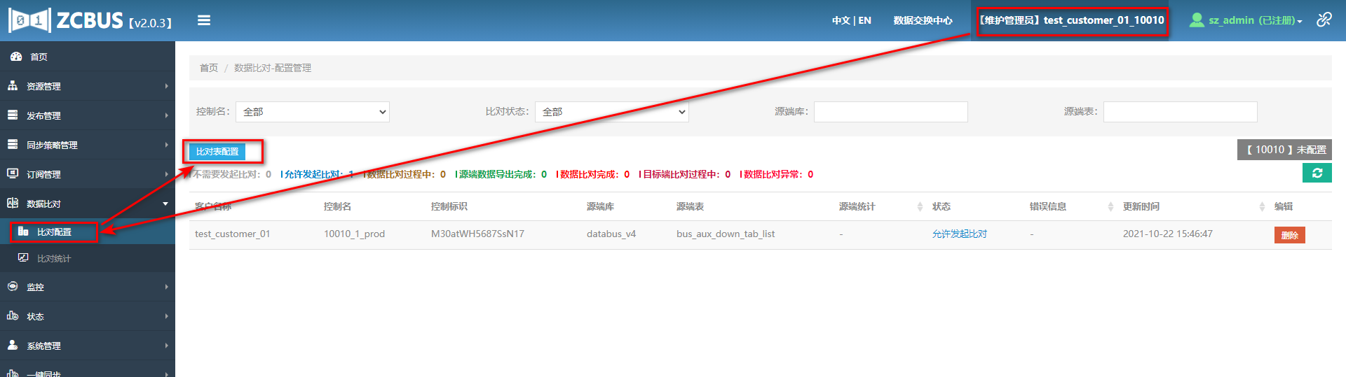 切换到相应客户端ID—>数据比对—>比对配置—>比对表配置: