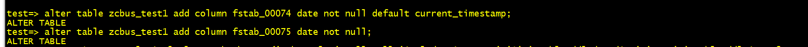 alter table zcbus_test1 add column fstab_0007 date not null default ‘2025-01-02’;