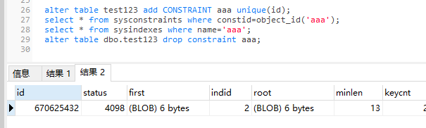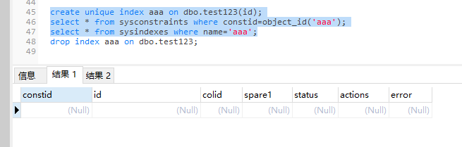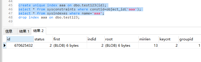 select * from sysindexes where name='aaa';