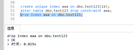 drop index aaa on dbo.test123;