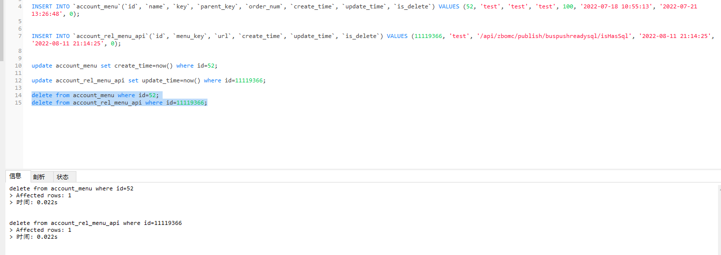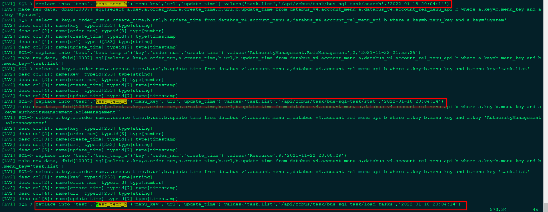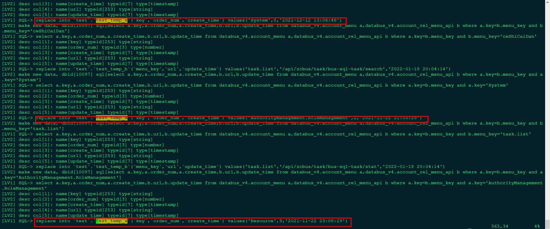 a表临时表部分日志信息: