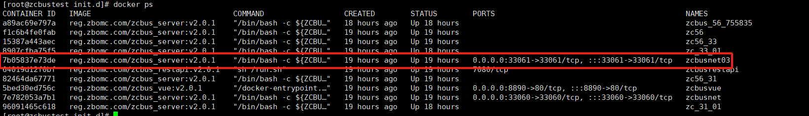 [root@zcbustest init.d]# ./zcbus_docker03 start