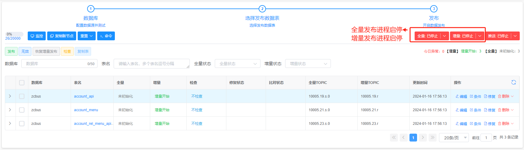 增量发布:即将数据源中原有数据初始化到数据融合平台,为后期全量数据对外提供数据基础服务