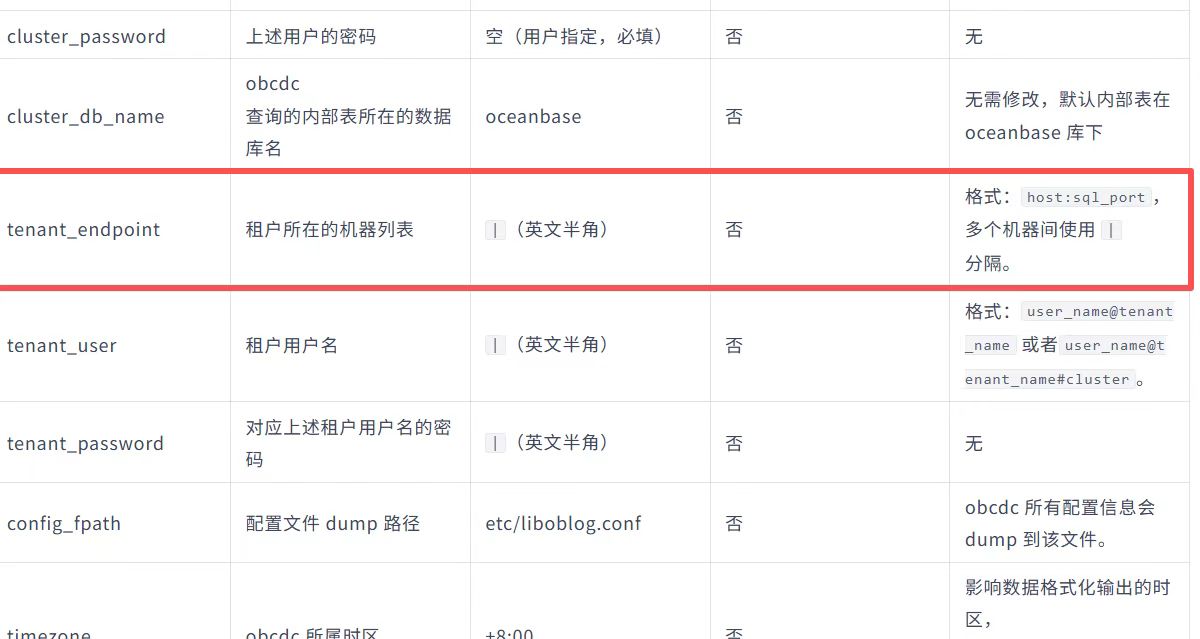 在配置之前请确认ob数据库版本和libobcdc.so.4版本的兼容性,具体查看方式请参考补充说明2.1