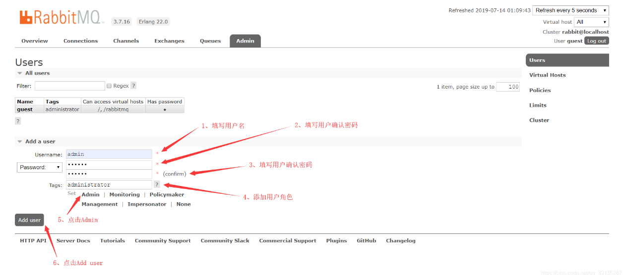 (1)超级管理员(administrator):可登陆管理控制台(启用management plugin的情况下),可查看所有的信息,并且可以对用户,策略(policy)进行操作。
