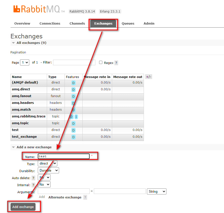 注意:exchange和rooting key区分大小写,指定exchange和routing key