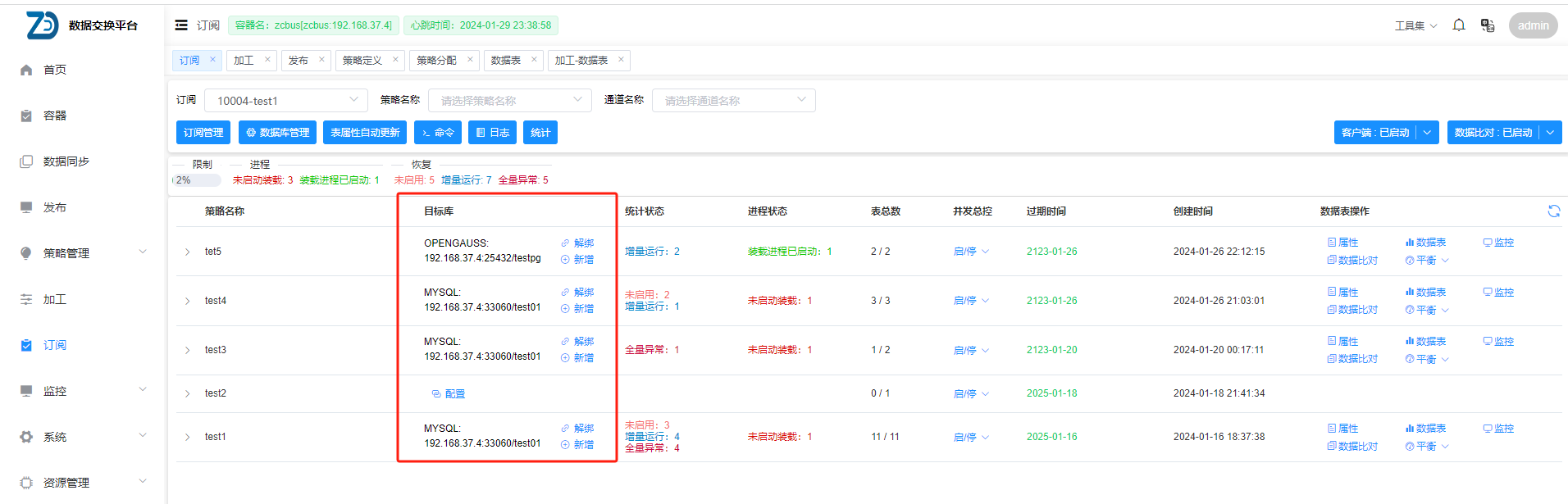 | multi_table_merge_mode | 多表合一参数,设置为1时,该通道使用多表合一模式,该功能主要用于对分布式数据库的分表数据进行合并装载,去掉多余的ddl操作,通道内配置的多个表需要源端表结构完全一致,多个表发起订阅时,需要所有表一起发起。 此参数修改,需要重启服务才能生效 |