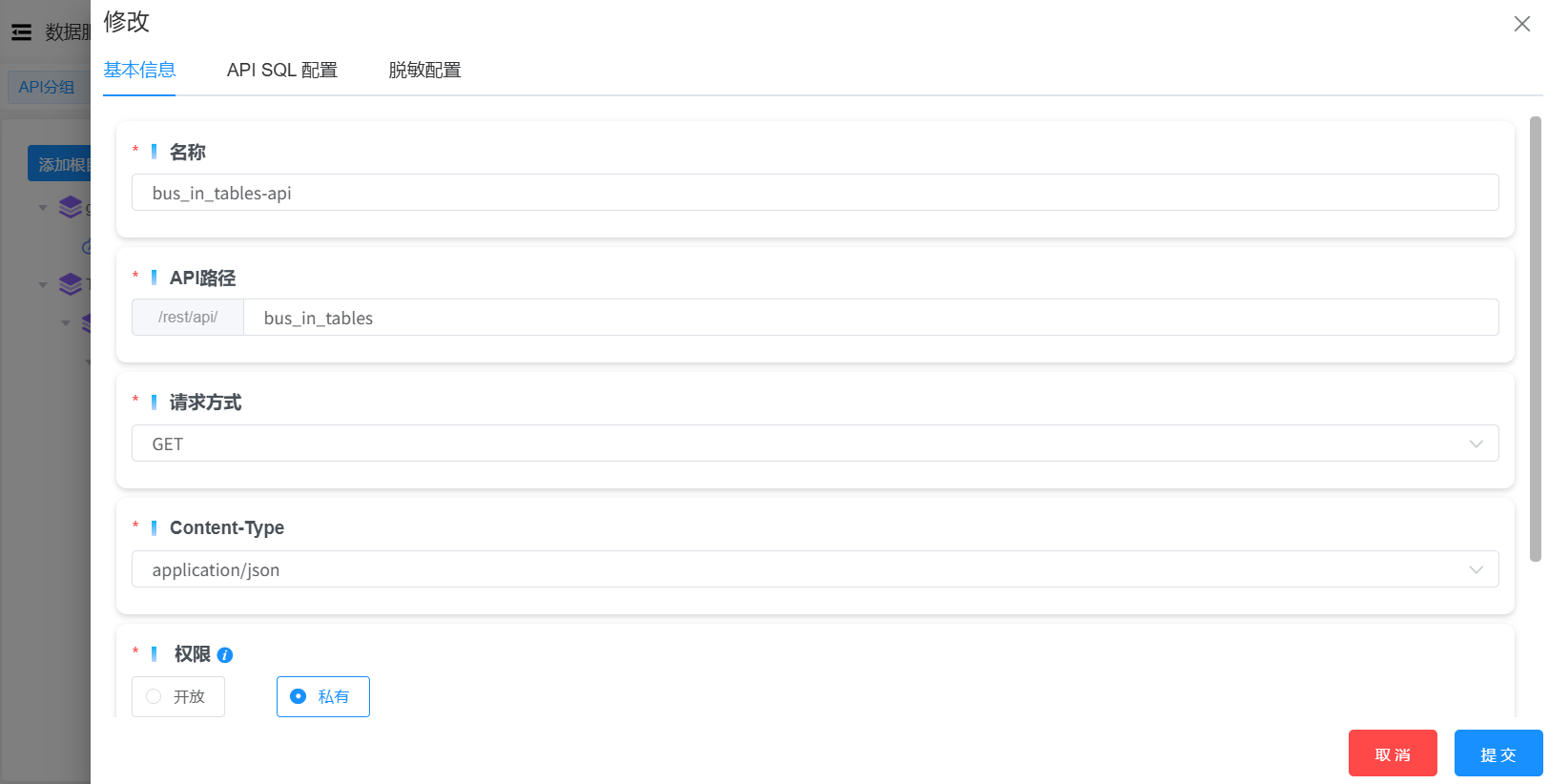 在修改API服务页面中,可以根据实际需要修改各项配置信息。修改完成后,点击“提交”按钮,完成对API服务配置的修改。