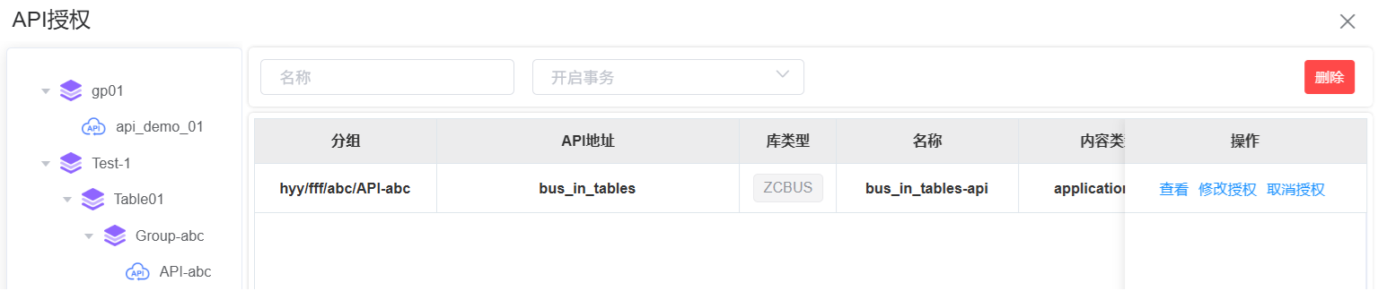 在API授权列表中,删除指定的API授权。当API授权与API服务未解除绑定时,不支持删除,需要解绑后删除。